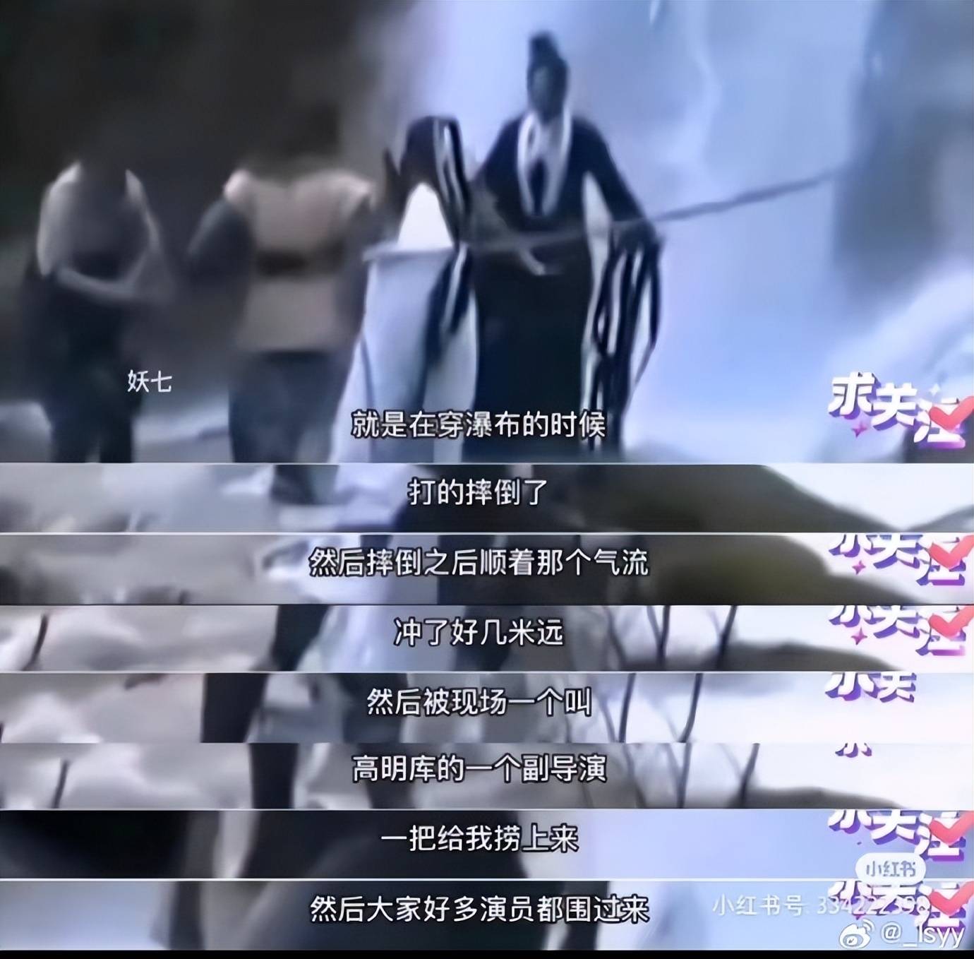 当时在九寨沟拍摄,环境堪称险恶。水流湍急,岩石湿滑,身着单薄戏服的刘亦菲一个不慎就被冲出去七八米远,而下方就是乱石悬崖,情况万分危急。黄晓明在节目里回忆,自己当时想都没想就跳入冰冷瀑布“我就跳到瀑布里边,把她救起来了”,和包括副导演高明库在内的其他工作人员一起,合力把刘亦菲拉了回来。上岸后的刘亦菲呛水虚弱,连站都站不稳,当天的拍摄也只能被迫中断。